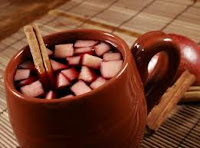 Queime a metade do açúcar com o cravo e a canela. Acrescente o vinho, já misturado com a água. Junte a maçã, a casca de laranja e o resto do açúcar e deixe cozinhar um pouco. Sirva bem quente.
